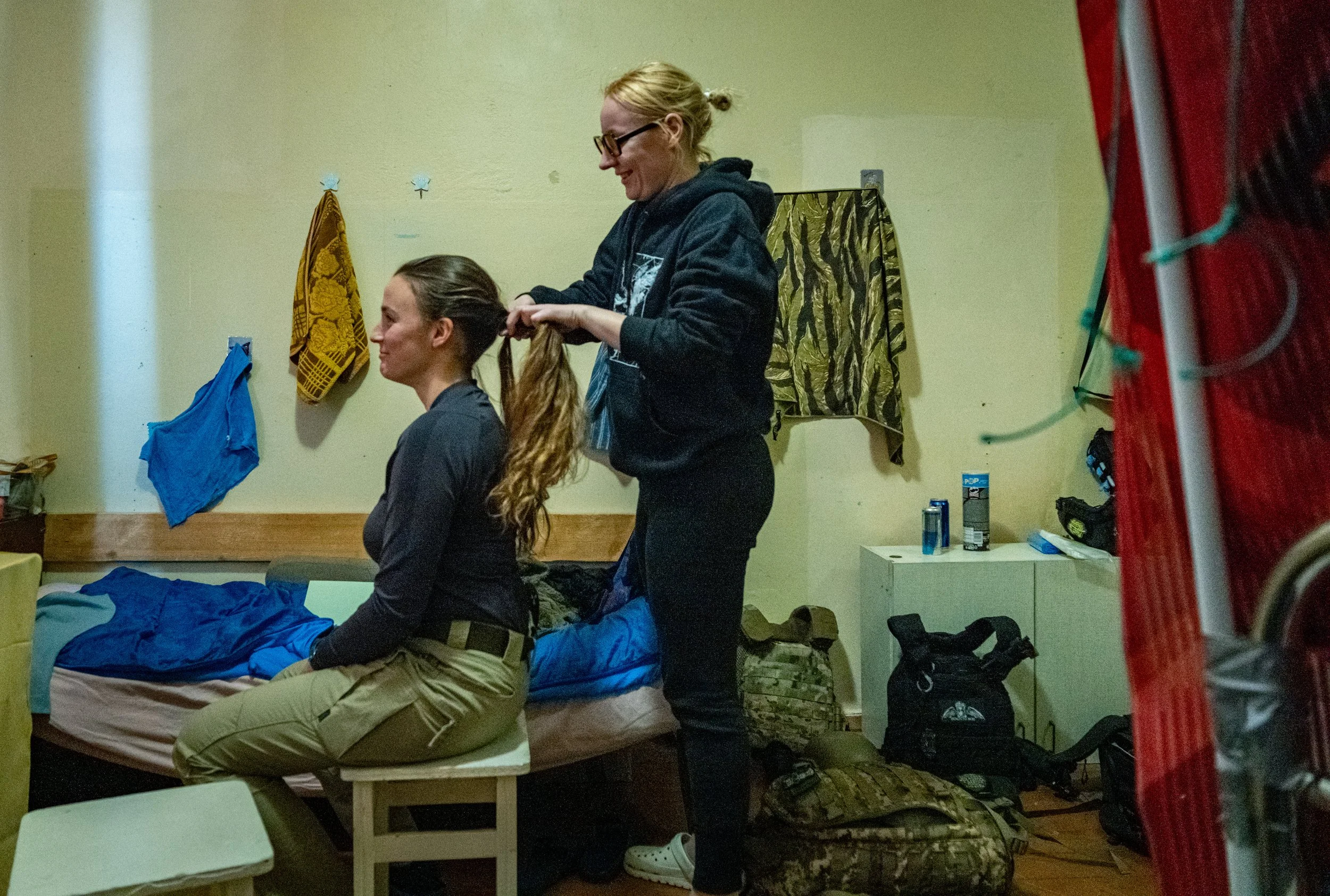 Outside, the russian drones keep striking. One hit just a few meters from us. Inside, day and night lose their meaning.
